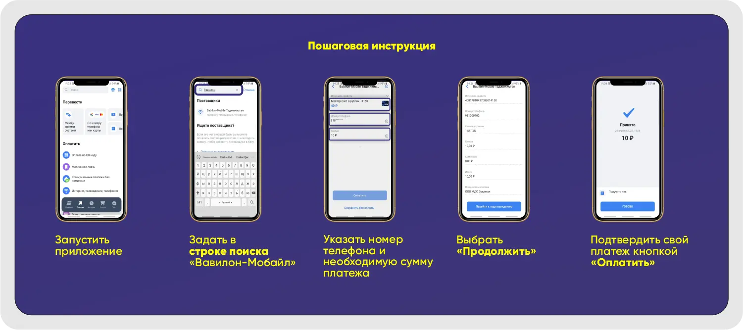 Теперь, Вы можете пополнять баланс абонентов «Вавилон-Мобайл» с помощью приложения «ВТБ Онлайн» с 0% комиссией! Пополняйте баланс, радуйтесь общению с родными и близкими, невзирая на расстояния! Будьте на связи друг с другом, а мы Вам в этом поможем!